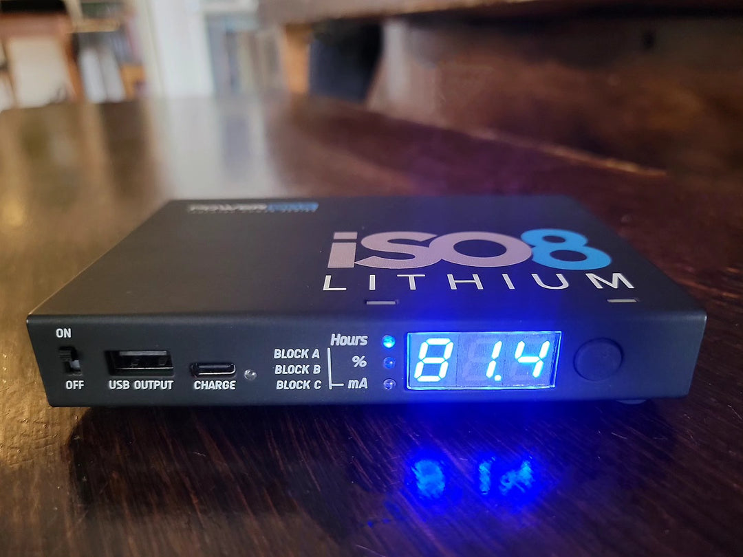 Power Box ISO rechargeable battery power supplies are their latest innovation. Designed and manufactured in the USA, these power systems feature patented BiWire™ isolation technology and ultra-clean, rechargeable DC power. Each output is fully electrically isolated while drawing from a single internal battery source. Intelligent internal power management continuously monitors battery status and delivers the precise current required by each pedal on your board.